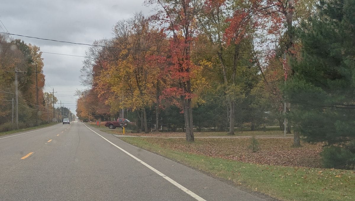 The park is located at 17484 Munn Road, between E Washington Road and Stafford. If you are approaching the park from the south it is really easy to find thanks to the large signs at the entrance. However, if you are approaching it from the north, you will likely drive right by it unless you are using a GPS navigation system. This is because there is a row of untamed white pine trees that blocks the sign from view when you are approaching it by driving southbound on Munn. Take a look at the image below - the red truck it turning into the park! I personally have driven past the entrance dozens of times when taking my kid to practice here.