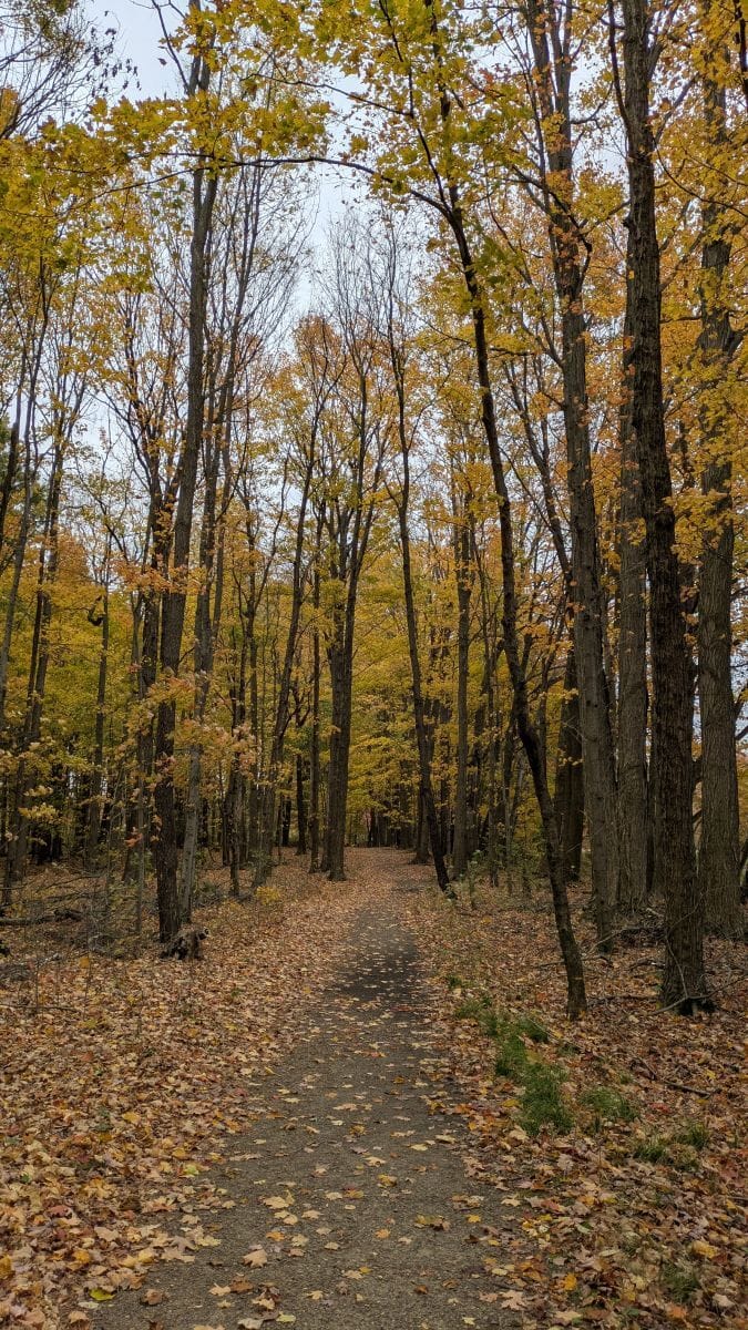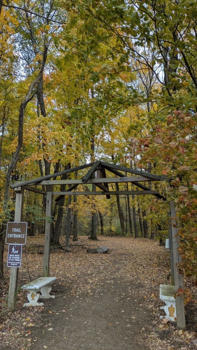 The newer path is a 0.63 mile trail that winds through the forest on the north side of the park. This trail was build by Girl Scout Troop #11 around 2013 after a proposal to the Township in 2012. While the trail does not appear on sites like AllTrails (yet) it is a pleasant walk through a pretty typical Geauga County forest - mostly maples and elms with a handful of young oaks and even a few stands of cherry trees.